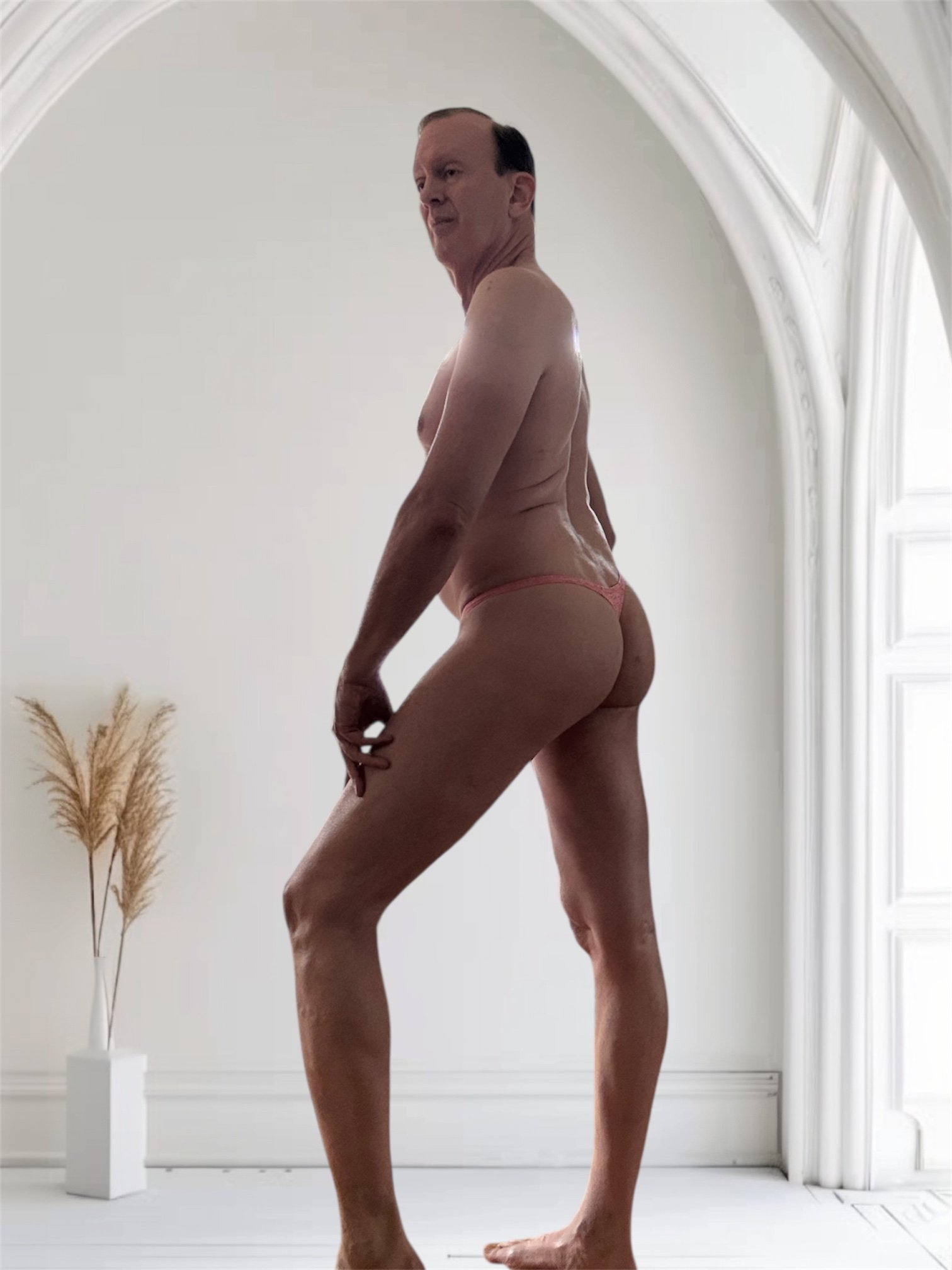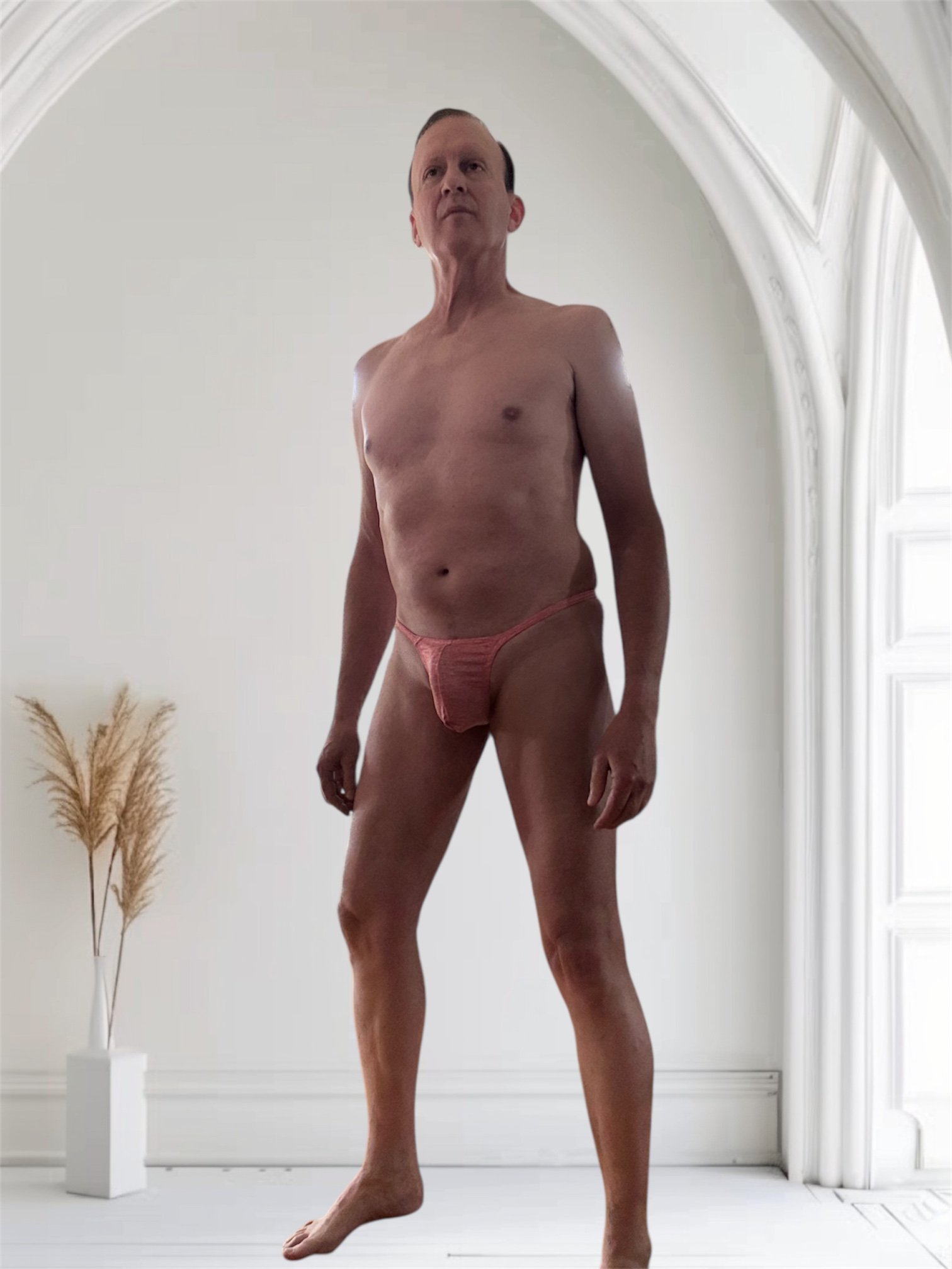 Men’s red and white tie dye thong.